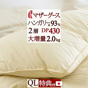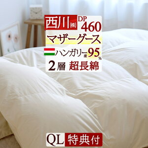 6時~8H] 羽毛布団 マザーグース グース クィーン 【西川掛布団カバー特典付】 クイーンサイズ 増量2.0kg DP430 2層式 羽毛ふとん 二層 ハンガリー産ホワイトマザーグースダウン93% 日本製...