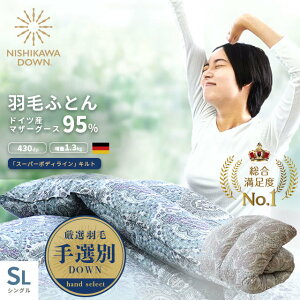 サイズ 約150210cm(SL)キルティング許容範囲+5%-3% 側生地 綿55% リヨセル45% 中材 [詰め物]ダウン95% フェザー5% [詰め物重量]1.3kg 仕様 ドイツ産ホワイトグースダウン スーパーボディラインキルト...