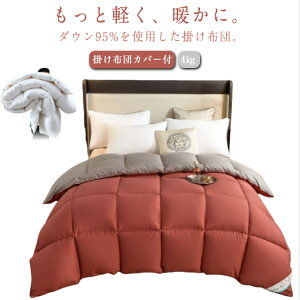 もっと軽く、暖かに。ダウン95%を使用した掛け布団。【掛け布団カバー付】羽毛ふとんはポリエステルのわたに比べ、軽く、保温性が高いことが特長です。吸湿放湿性にも優れるため、寝具内がムレづらく、快適にご使用いただけます。縫い