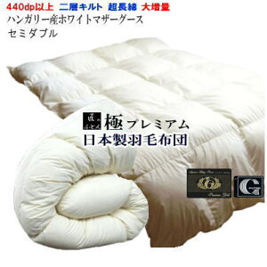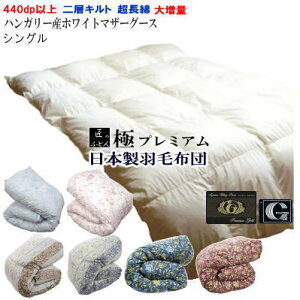 こだわりの国産品。一羽一羽丁寧に採取したハンガリー産ホワイトマザーグースをたっぷり使用した高級感あふれる羽毛布団です。品質はプレミアムゴールドラベル、原産地証明、品質保証書付きの羽毛布団です。かさ高180mm以上でふんわり