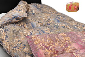 サイズ/2350×2100mm 仕様/表布地:綿100%サテン(抗菌・防臭加工) 中わた:ポーランドホワイトマザーグースダウン95%・スモールフェザー5%(抗菌・防臭加工) プレミアムゴールドラベル 中わた重量/2