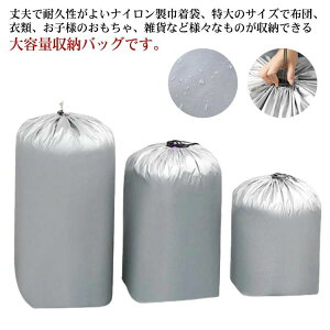 丈夫で耐久性がよいナイロン製巾着袋、特大のサイズで布団、衣類、お子様のおもちゃ、雑貨など様々なものが収納できる大容量収納バッグです。【簡単くるくる丸めて入れるだけ】くるくると丸めて入れるだけ。長細い巾着袋で簡単にスッ