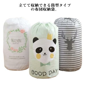 立てて収納できる筒型タイプの布団収納袋。コンパクトに収納♪円筒型の収納袋は狭いクローゼットの隙間に立てて収納できます。布団をくるくる巻いて入れるだけで、ボリューミーな布団がスムーズに収納しやすい設計です。巾着デザイン
