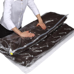 サイズ約 横90×縦110(cm)重量約 180g内容量1枚材質本体:ポリエチレン・ナイロンバルブ:ポリエチレンスライダー:ポリアセタール生産国中国製注意事項※商品ページ内には別商品を含む画像を使用しています。備考収納目安(約):シングル