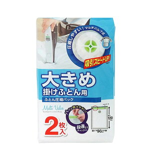 シーズンオフの布団一組をまとめてコンパクトに収納できる圧縮袋です。 かさばりやすい羽毛布団なども小さく圧縮して、押入れやクローゼットに収納できます。 圧縮しやすいマルチバルブを採用。 掃除機への負担が掛らない構造になり、吸引スピードもUP