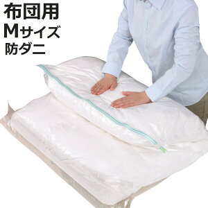 無機系防ダニ剤を配合した圧縮パック。 押すだけでも、掃除機でも、どちらでも圧縮できます。 シングル掛けふとんを(約)1枚収納可能なMサイズです。 羽毛布団にも使用できます。(ダウン70%以上) 「楽ジッパー」で開閉楽々。取付済なので