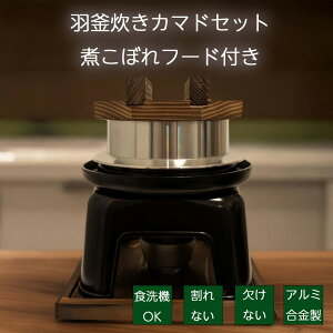 【商品説明】二層クラッド材クロムステンレス+アルミを使用し一枚の材料からヘラ絞り技術で完成させた羽釜。屋外での直火、家庭用ガス・IHに対応。クラッド材による熱伝導で熱が釜全体に伝わり短時間でお米が均一に美味しく炊き上が