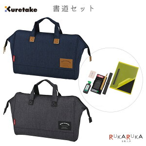 バッグサイズ(約)開口幅38cm/底幅34cm 高さ28cm+持ち手15cm マチ3cm 重さ(約)1020g *セット内容 ●書道バッグ(レッスンバッグ) ●フタ付き中皿(ABS樹脂) ●筆2本(太筆3号、細筆7号) ●下敷き ●墨...