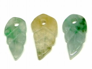 サイズ:47×25×厚6mm 重さ:11.9g ●緑色が綺麗なミャンマー翡翠。こちらは透明感の有る氷種(アイスジェダイト)です。木の葉が彫り込まれたユニークなデザイン。貫通穴が有ります。ペンダントトップや下げ飾り等に...