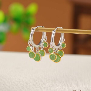 ・カテゴリ: ピアス・イヤリング・スタイル: 文芸レトロ・素材: 925シルバー、翡翠・カラー展開: ゴールド、シルバー・流行要素: 貔貅、エスニック、国風