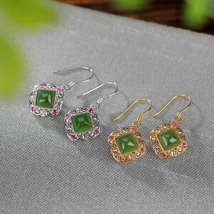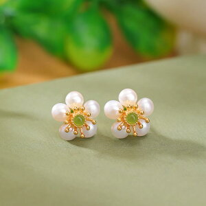 ・カテゴリ: 耳飾り・対象: 女性・スタイル: 文芸レトロ・素材: 925シルバー・加工: 翡翠象嵌・モチーフ: 植物・花
