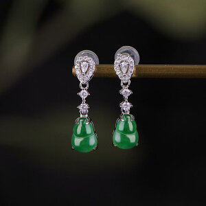 カテゴリ: 耳飾り・対象: レディース・素材: シルバー・素材純度: シルバー925・加工方法: 翡翠象嵌・スタイル: 文芸レトロ・人気デザイン: 瓢箪