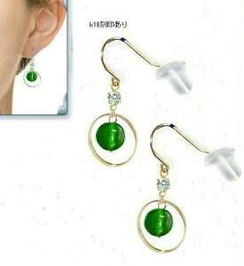 お勧め 18金イエローゴールド、YG18K掛け式フック仕様(18k刻印あり)、国内産サイズ:長さ約2.2cmキュービックジルコニアが約8mmx3mm、人工石です約6mmインド翡翠/グリーン/緑約12m...
