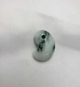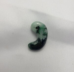 サイズ:41×17×厚12mm 重さ:15.4g ●緑色が綺麗なミャンマー翡翠。こちらは透明感の有る氷種(アイスジェダイト)の勾玉です。貫通穴が有ります。ペンダントトップや下げ飾り等に。