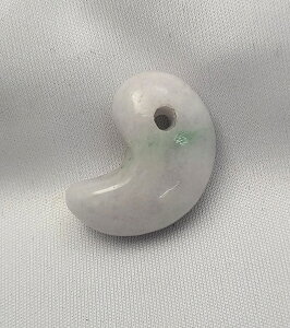 新潟の翡翠工芸師 サイズ: 23mm*16mm*9mm 穴径 : 3.8mm 種をモチーフに勾玉にしました。 持つ人の願いを種とし、その種が育つようにと思いを込めて制作しました。 この翡翠は地