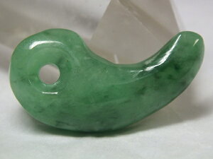 サイズ:20×13×厚11mm 重さ:4.6g ●緑色が綺麗なミャンマー翡翠。こちらは透明感の有る「氷種」翡翠の勾玉です。ペンダントトップや下げ飾り等に。