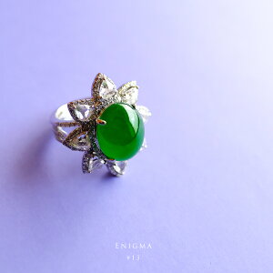 ミャンマー産透明感抜群なホワイトをベースに、 ホワイト模様が雲のように入っており、光によって見えるほんのり青系のあるグリーンが美しい一点もの