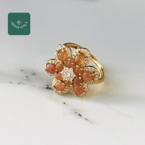 グアテマラ産ぷっくり青緑ルースを使った存在感のあるリング、奥深い色味に引き込まれていく一点
