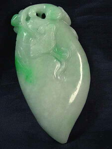 サイズ:72×38×厚11mm 重さ:50.2g ●緑色が綺麗なミャンマー翡翠。木の葉が彫り込まれたユニークなデザイン。石コレクションに。上部に貫通穴が有るので下げ飾り等にもなります。
