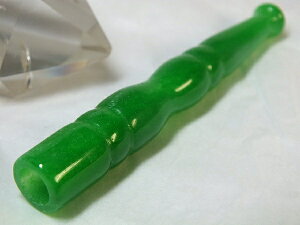 サイズ:長80×直径12mm 先端穴直径:約7mm 重さ:12.6g ●緑色が綺麗なミャンマー翡翠。煙草の「吸い口」煙嘴(イエンツァイ)です。飾り彫りのないシンプルなデザインですが、一塊の石から作られた贅沢な逸品です...