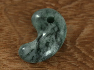 糸魚川翡翠勾玉(いといがわひすいまがたま) 産地 : 糸魚川産(新潟県・国産) 制作 : 和工房 作 富山県の職人 サイズ: 28mm*18mm*11mm 穴径 : 3mm この勾玉は地元糸魚川の天津神社(安産...