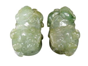 806-024RYZa 一品一図 画像の物がお届けになります。 ミャンマー産 良質 本翡翠 ひすい ヒキュウ彫り 風水物 ●材質 良質本翡翠ジェダイト如意ヒキュウ彫りペア 如意を背負っています ヒキュウサイズが長さ約42mm...