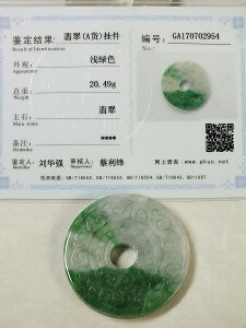 中央穴直径:約8mm 重さ:20.5g 【材質】天然翡翠(ジェイダイト、硬玉)・俗称「翡翠A貨」・完全無処理翡。 ●緑色が綺麗なミャンマー翡翠。こちらは色・艶・彫り全て良いA貨と呼ばれるランクの物です...