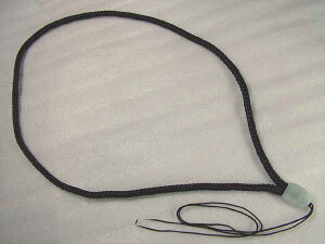 環周:約650mm 紐太さ:約3mm 重さ:7g ペンダント用の綺麗な飾り紐。先端にある丸玉2Pはミャンマー翡翠ですとオニキスです。その先の紐にお好みの石を通し、オリジナルペンダントを作成して下さい。