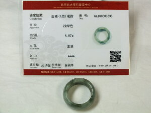 中央部:高10×厚7mm 重さ:9.4g ●緑色が綺麗なミャンマー翡翠。飾り彫りは無くシンプルなデザインですが一塊の石から作られた贅沢な一品です。