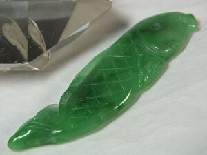 サイズ:51×15×厚4mm 重さ:6.4g ●緑色が綺麗なミャンマー翡翠。縁起柄の鯉が彫り込まれています。石コレクションやお守りに。上部に貫通穴が有るのでオリジナルアクセ作りや下げ飾り等にもなります...