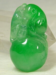 サイズ:43×24×厚14mm 重さ:26.7g ●緑色が綺麗なミャンマー翡翠。こちらは透明感の有る「氷種」です。縁起柄の宝珠が彫り込まれています。石コレクションやお守りに。上部に貫通穴が有るので下げ飾りにもなります...