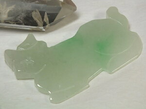 石サイズ:26×14×厚12mm 重さ:10.6g 【材質】天然翡翠(ジェイダイト、硬玉)・俗称「翡翠A貨」。 ●こちらは完全無処理で「A貨」と呼ばれるランクのミャンマー翡翠です。中国の定番的な神獣「貔貅」(ひきゅう)