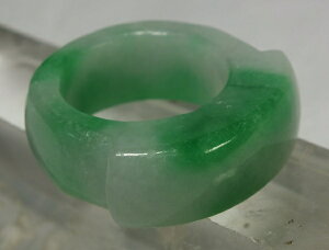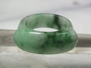 高15×厚3.5mm 重さ:6.7g ●緑色が綺麗なミャンマー翡翠。翡翠の魅力がタップリと詰まった個性的なリング。飾り彫りのないシンプルなデザインですが一塊の石から作られた贅沢な逸品です。