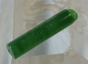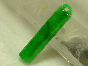 サイズ:長27×直径5mm 重さ:1.8g ●緑色が綺麗なミャンマー翡翠。淡いグリーンがシンプルなデザインに勝るトップです。 上部に貫通穴が有ります。ペンダントや下げ飾り等に。