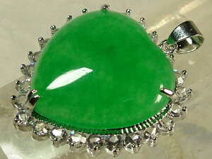 0mm 翡翠サイズ:25×24mm 重さ:9.2g ●緑色が綺麗なミャンマー翡翠。インパクト充分な輝きのペンダントトップです。金具は合金、周りのダイヤ状小粒石はキュービックジルコニア、翡翠はトリートメン
