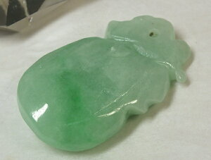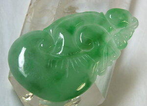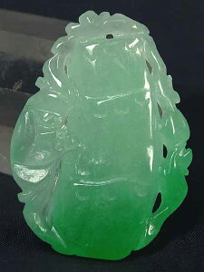 m 重さ:7.6g 【材質】天然翡翠(ジェイダイト、硬玉)・俗称「翡翠A貨」・完全無処理翡翠。 ●こちらは色・艶・彫り全て良いA貨と呼ばれるランクのミャンマー翡翠です。中国の定番的な神獣「