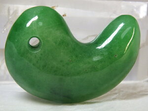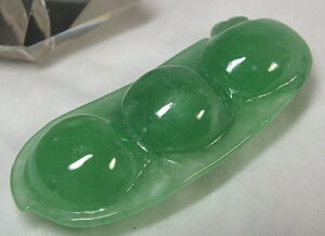 サイズ:57×23×厚14mm 重さ:25g ●緑色が綺麗なミャンマー翡翠。縁起柄の莢豆が彫り込まれています。石コレクションやお守りに。上部に貫通穴が有るのでペンダントトップや下げ飾り等にもなります...