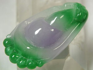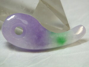 サイズ:48×25×厚14mm 重さ:21.4g ●緑色が綺麗なミャンマー翡翠。仄かにラベンダー色も混ざった珍品です。縁起柄の宝珠が彫り込まれています。石コレクションやお守りに。上部に貫通穴が有るので下げ飾りにもなります...