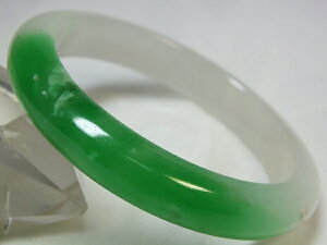 厚さ:8mm 重さ:61.6g ●緑色が綺麗なミャンマー翡翠。飾り彫りのないシンプルなデザインですが、一塊の石から作られた贅沢な逸品です。 ●中国では翡翠の腕輪は女性の定番ファッションで、お守りです。特に