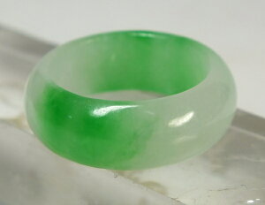 サイズ:高7×厚3mm 重さ:3.5g ●緑色が綺麗なミャンマー翡翠。翡翠の魅力がタップリと詰まった個性的なリング。飾り彫りの無いシンプルなデザインですが一塊の石から作られた贅沢な一品です。