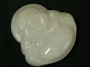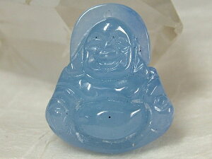サイズ:高26×22×厚13mm 重さ:9.8g ●淡紫色が綺麗なミャンマー翡翠。開運と、良縁・子宝の神、布袋様が両面に彫り込まれています。上部に貫通穴が有ります。ペンダントトップや下げ飾り等に。