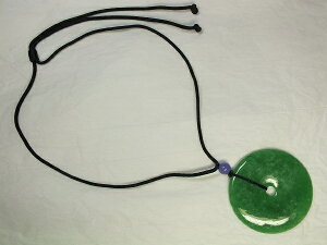 最長紐周:約660mm トップ石サイズ:直径56×厚6mm 重さ:43.9g ●緑色が綺麗なミャンマー翡翠。紐の長さは最長サイズまで調節可能です。 ●「平安」とは中国では旅人のお守りです。勿論普段でも持ち...