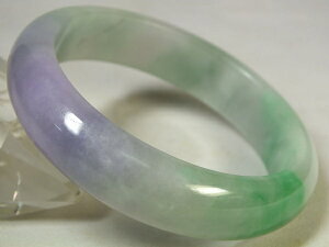 重さ:90.4g ●緑色が綺麗なミャンマー翡翠。仄かにラベンダー色も混ざっています。飾り彫りのないシンプルなデザインですが、一塊の石から作られた贅沢な逸品です。 ●中国では翡翠の腕輪は女性の