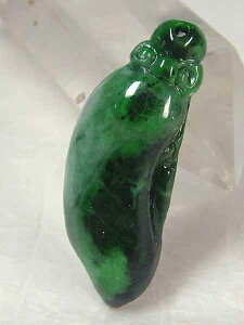 サイズ:45×16×厚11mm 重さ:13.1g ●緑色が綺麗なミャンマー翡翠。縁起柄の甜瓜が彫り込まれています。緑の色が場所によって違い飽きのこない一品です。上部に貫通穴が有ります。ペンダントトップや下げ飾りに...