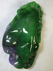 サイズ:82×44×21mm 重さ:102.2g ●緑色が綺麗なミャンマー翡翠。ラベンダー色も混ざった珍品です。縁起柄の仏手柑(仏様の手に似た柑橘類)が彫り込まれています。石コレクションや置物に。上...