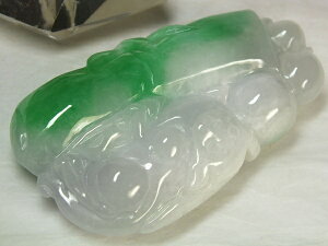 サイズ:104×25×最厚部13mm 重さ:48g ●緑色が綺麗なミャンマー翡翠。中国の定番的な神獣「貔貅」(ひきゅう)が彫り込まれています。石コレクションやお守りに。片側の端に貫通穴が有るので下げ飾り等にもなります...