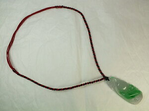 紐周(約):450〜600mm トップ石サイズ:59×25×厚11mm 重さ:27.3g ●緑色が綺麗なミャンマー翡翠。縁起柄の宝珠が彫り込まれています。 ※紐の長さは調節可能です。