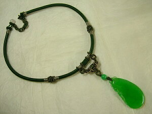 紐周:約670mm トップ石サイズ:68×26×厚16mm 重さ:45.7g ●緑色が綺麗なミャンマー翡翠。縁起柄の莢豆が彫り込まれています。印象的なデザインのペンダントです。 ※紐の長さは調節出来ません...