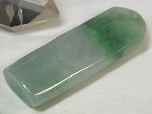 サイズ:71×24×厚13mm 重さ:55.7g ●緑色が綺麗なミャンマー翡翠。両面とも飾り彫りのないシンプルな牌子です。上部に貫通穴が有ります。石コレクションや翡翠細工作り、下げ飾り等に。 ☆商品につきましては注意を払った検品を行って