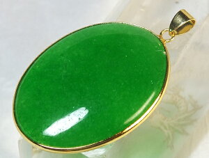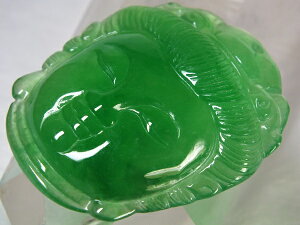 サイズ:38×22×厚12mm 重さ:19.1g 緑色が綺麗なミャンマー翡翠。こちらはかなり透明感の有る氷種です。縁起柄の甜瓜が彫り込まれています。上部に貫通穴があります。ペンダントトップや下げ飾り等に...